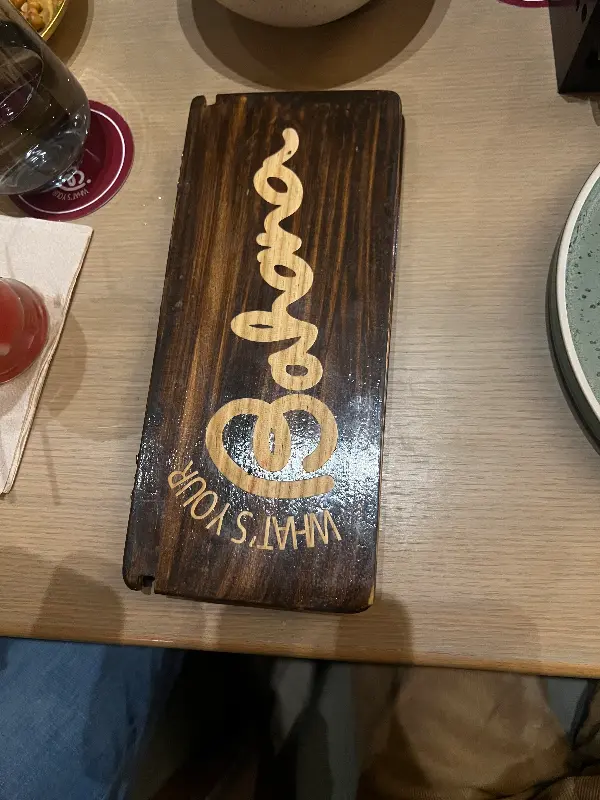 나무 메뉴판에 새겨진 “What’s Your Bahana” 로고는 이곳만의 개성을 드러냅니다.
