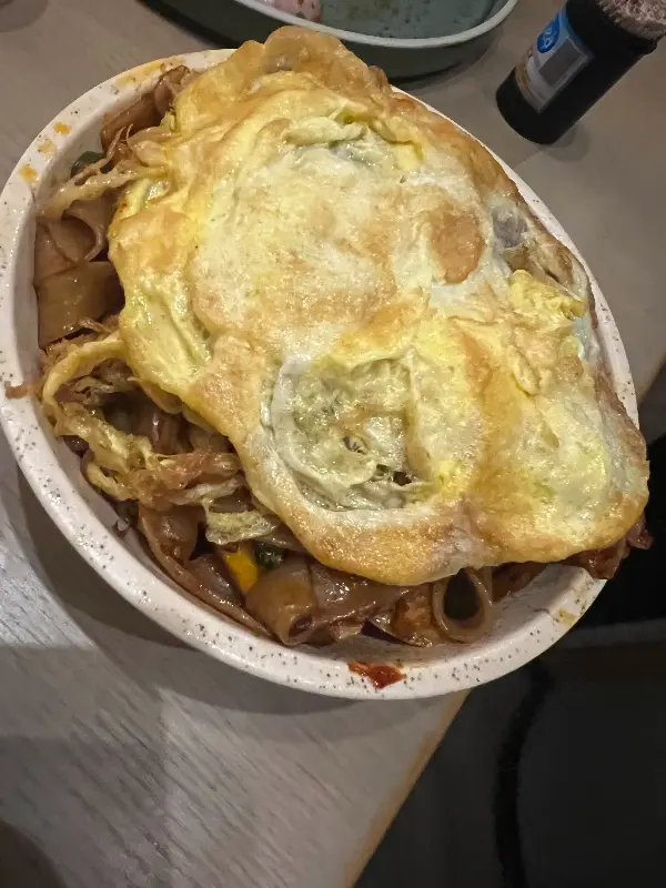 계란 오믈렛이 덮인 독특한 요리는 어떤 맛일까요? 새로운 메뉴에 대한 기대감을 불러일으킵니다.