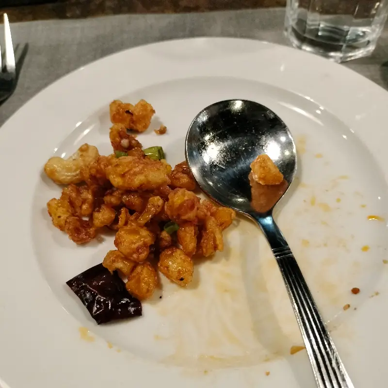 사진 속 치킨 요리는 보기만 해도 군침이 돕니다. 겉은 바삭하고 속은 촉촉한 치킨은 달콤하면서도 매콤한 소스와 어우러져 환상적인 맛을 자랑합니다. 넉넉한 양은 여러 명이 함께 나눠 먹기에 충분하고, 남은 양념까지 밥에 비벼 먹으면 든든한 한 끼 식사가 됩니다. Facing East의 푸짐한 인심을 느낄 수 있는 대표적인 메뉴입니다.