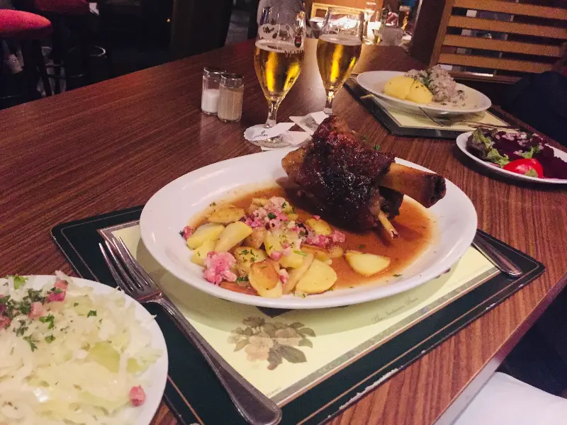 독일 맥주와 함께 즐기는 학센은 그야말로 환상의 궁합을 자랑한다. 시원한 맥주 한 모금은 느끼함을 싹 잡아주고, 입안을 깔끔하게 정리해준다.