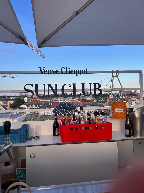 마츠히사의 또 다른 매력은 바로 루프탑 바입니다. 뮌헨 시내를 한눈에 조망할 수 있는 루프탑 바는 특히 날씨가 좋은 날에는 최고의 인기를 누립니다. ‘뵈브 클리코 선 클럽(Veuve Clicquot Sun Club)’이라는 이름에 걸맞게, 샴페인 한 잔을 기울이며 석양을 감상하는 것은 잊지 못할 경험이 될 것입니다.