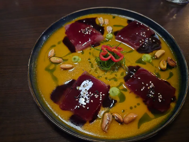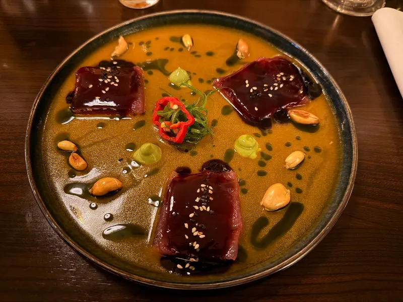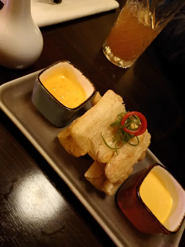 가장 먼저 등장한 것은 ‘유시타스 프리타스’였다. 튀겨낸 유카는 겉은 바삭하고 속은 촉촉했다. 함께 제공된 두 가지 소스는 유카의 담백함을 더욱 풍성하게 만들어주었다. 특히, 붉은 빛깔의 소스는 매콤하면서도 달콤한 맛이 어우러져 묘한 중독성을 자아냈다. 13.50유로라는 가격이 다소 부담스럽게 느껴질 수도 있지만, 맛을 보는 순간 그만한 가치가 있다는 생각이 들었다.