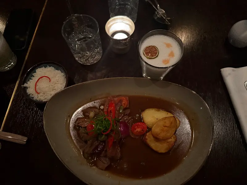 기다리고 기다리던 ‘로모 살타도’가 테이블에 놓였다. 윤기가 자르르 흐르는 소고기와 신선한 야채, 그리고 밥이 조화롭게 담겨 있었다. 한 입 맛보는 순간, 감탄사가 절로 나왔다. 부드러운 소고기는 입안에서 살살 녹았고, 양파와 감자는 달콤하면서도 짭짤한 소스와 어우러져 환상적인 맛을 냈다. 밥과 함께 먹으니 든든함까지 더해져 완벽한 한 끼 식사였다. 마치 페루 현지에서 맛보는 듯한Authentic한 맛에 감동했다.