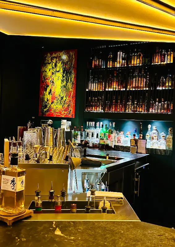 고급스러운 분위기의 바에서는 숙련된 바텐더들이 정성껏 칵테일을 제조합니다.