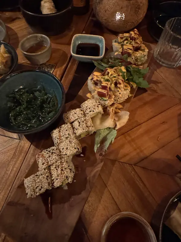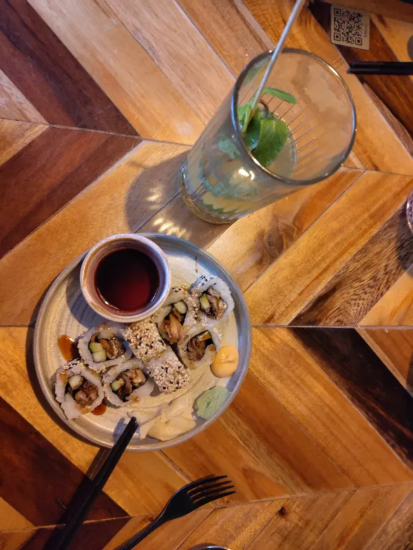 아힘사는 겉으로 보기에는 소박한 아시아 레스토랑입니다. 하지만 문을 열고 들어서는 순간, 따뜻하고 편안한 분위기에 사로잡히게 됩니다. 테이블이 많지 않아 아늑함을 더하며, 원하는 시간에 식사를 즐기려면 예약은 필수입니다. 금요일 저녁, 은은한 조명 아래 아힘사에서의 저녁 식사는 훌륭한 선택이었습니다. 간결하면서도 취향을 만족시키는 메뉴 구성은 설렘을 더합니다.
