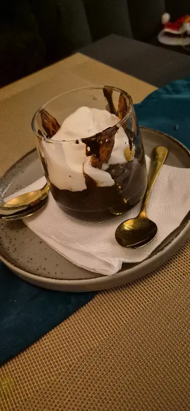 식사 마무리로 완벽한 달콤한 디저트. 부드러운 크림과 초콜릿의 조화가 환상적이다.