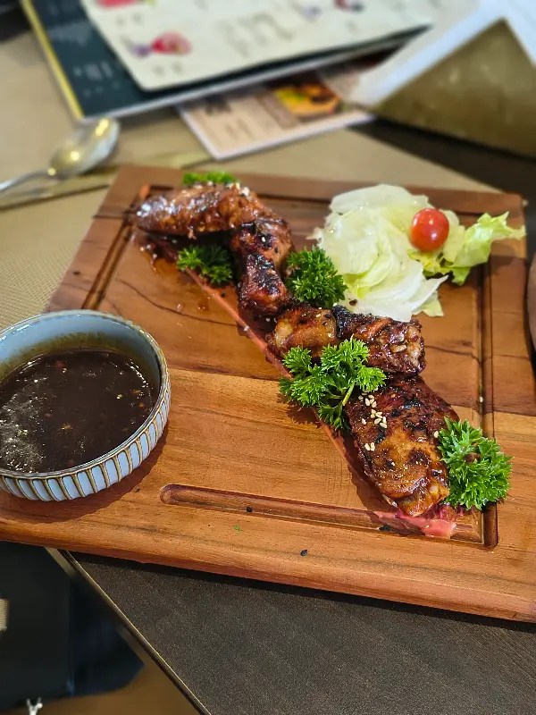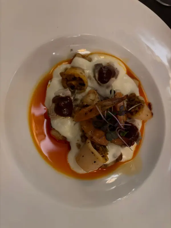 ‘미리’에서는 탈리 외에도 다양한 퓨전 요리를 맛볼 수 있습니다. 친구들과 함께 방문했을 때는 고안 새우 요리, 해산물 모듬, 치킨 버거 등을 주문했는데, 모두 훌륭했습니다. 특히 고안 새우 요리는 독특한 플레이팅과 맛으로 유명하다고 합니다. 싱싱한 새우와 매콤한 소스의 조화가 일품이었고, 눈으로도 즐거운 요리였습니다.