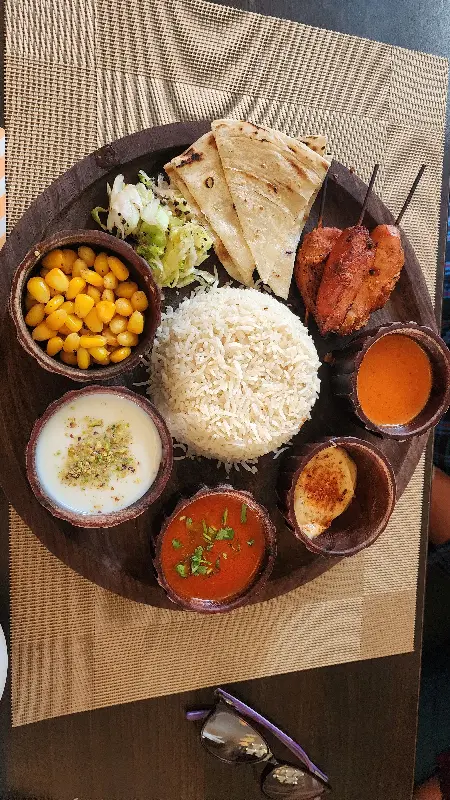 저희는 아프리카 탈리와 아시아 탈리를 주문했습니다. 잠시 후, 테이블 위로 화려한 색감의 탈리들이 차려졌습니다. 작은 그릇들에 정갈하게 담긴 다양한 요리들은 보기만 해도 군침이 돌았습니다.