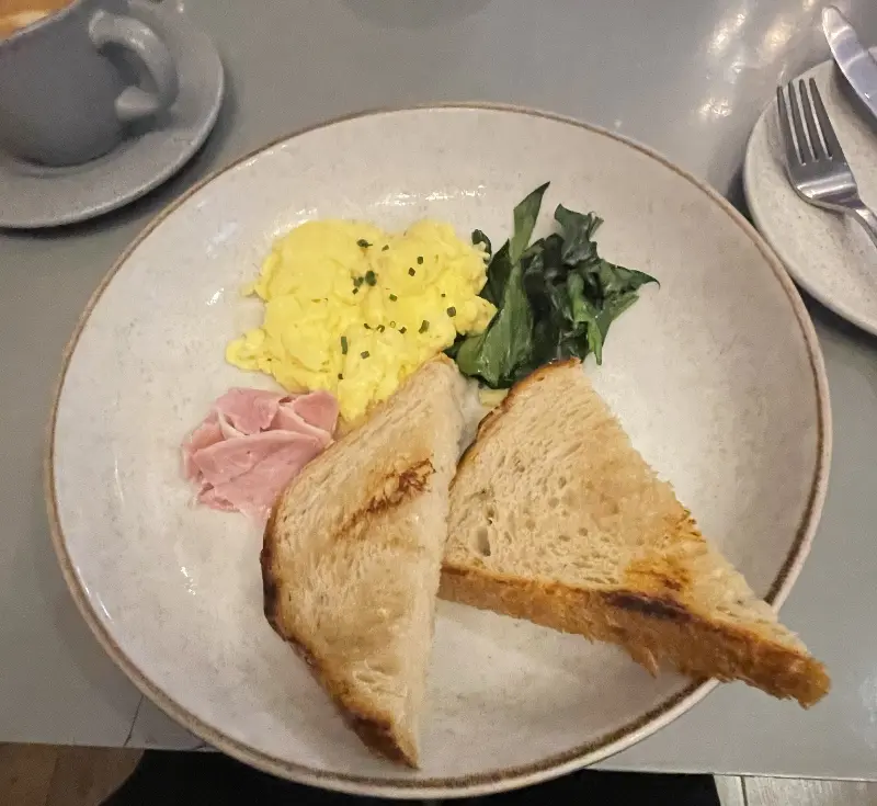 제 여자친구가 주문한 카프레제 토스트 또한 훌륭했습니다. 신선한 토마토와 모짜렐라 치즈, 그리고 바질 페스토의 조화는 익숙하면서도 특별한 맛을 선사했습니다. 특히 토스트 빵의 바삭함과 부드러운 치즈의 조화가 돋보였고, 곁들여진 신선한 채소는 입안을 상쾌하게 마무리해 주었습니다.