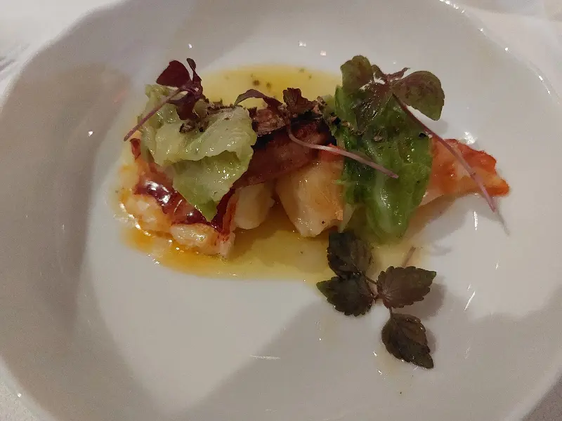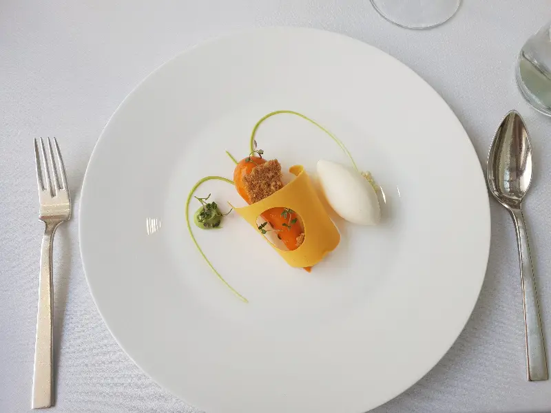 프렌치 요리 베이스의 컨템포러리 디너 코스는 그야말로 예술이었다. 2스타 미슐랭 레스토랑답게, 모든 요리가 정갈하고 아름다운 플레이팅을 자랑했다. 마치 한 폭의 그림을 보는 듯한 섬세함에 감탄하며, 음식을 맛보기도 전에 이미 눈으로 즐거움을 느낄 수 있었다.