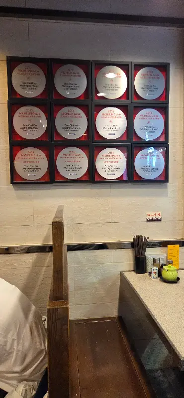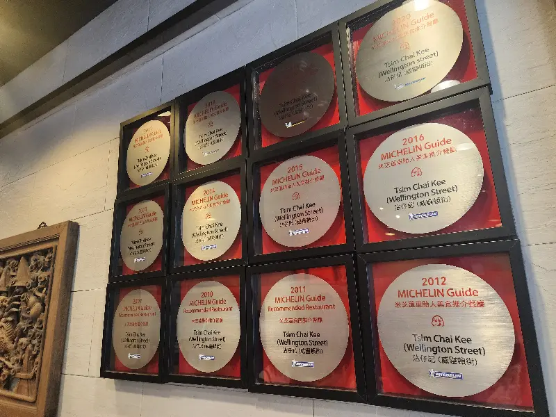 오후 5시, 5분 정도의 짧은 웨이팅 끝에 드디어 식당 안으로 들어설 수 있었다. 문을 열자 후끈한 열기와 함께 왁자지껄한 소리가 귓가를 때린다. 테이블 간 간격은 좁고, 모르는 사람들과 합석하는 것이 당연한 풍경. 하지만 이 모든 것이 홍콩 특유의 활기찬 분위기를 더한다. 벽면에는 미슐랭 가이드 선정 기념 액자들이 빼곡하게 걸려 있어, 이곳이 단순한 식당이 아닌 ‘맛’으로 인정받은 곳임을 증명하고 있었다.