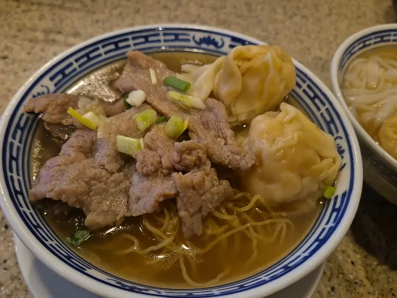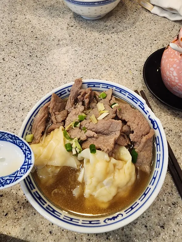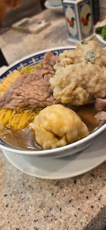 소고기 완탕면의 묵직한 비주얼, 진한 국물과 어우러진 풍미가 일품이다.