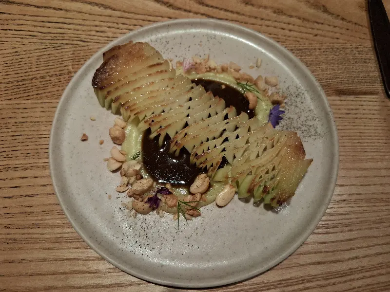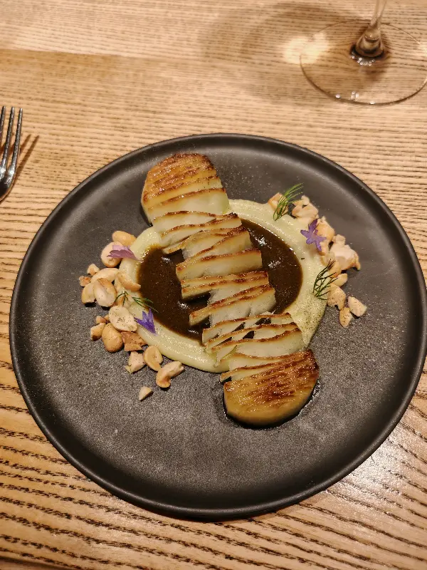 KLE에서는 6코스 테이스팅 메뉴를 주문했다. 메뉴는 신선한 제철 재료를 사용하여 맛의 균형을 훌륭하게 맞춘 요리들로 구성되어 있었다. 각 코스마다 풍미, 식감, 색감의 조화가 돋보였고, 요리 하나하나가 마치 예술 작품처럼 아름다웠다. 마치 디님의 후기처럼, 모든 요리가 하나의 이야기를 담고 있는 듯한 느낌을 받았다. 재치 넘치고 개성 넘치는 메뉴 구성은 식사 시간을 더욱 즐겁게 만들어주었다.