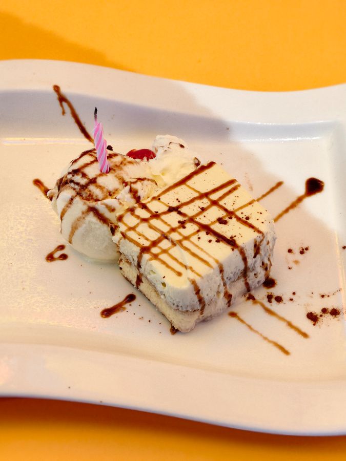 생일 초가 꽂힌 달콤한 디저트는 특별한 날의 즐거움을 더해줍니다.