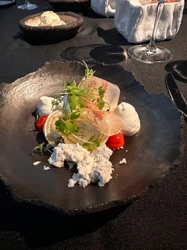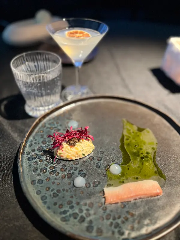 언센서드의 가장 큰 매력은 단순한 식사를 넘어, 오감을 자극하는 특별한 경험을 선사한다는 점입니다. 테이스팅 메뉴는 헝가리, 러시아, 스페인, 중국, 미국, 일본, 브라질 등 세계 각국의 요리를 맛볼 수 있는 미식 여행과 같습니다. 한 접시, 한 접시 나올 때마다 눈과 입이 즐거웠습니다. 헝가리의 수제 파스타는 망갈리카 베이컨과 파프리카의 풍미가 어우러져 깊은 인상을 남겼고, 러시아의 연어는 비트와 고추냉이의 조화가 신선했습니다.
