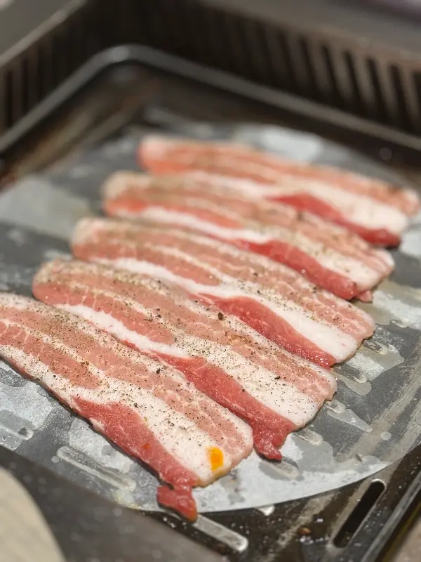 지글지글 익어가는 삼겹살, 소금과 후추의 조화가 향수를 자극합니다.