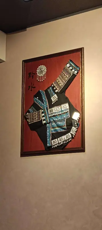 벽면에 걸린 전통 의상 장식, 한국적인 아름다움을 더합니다.