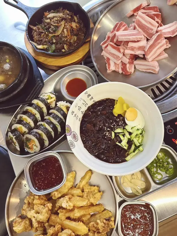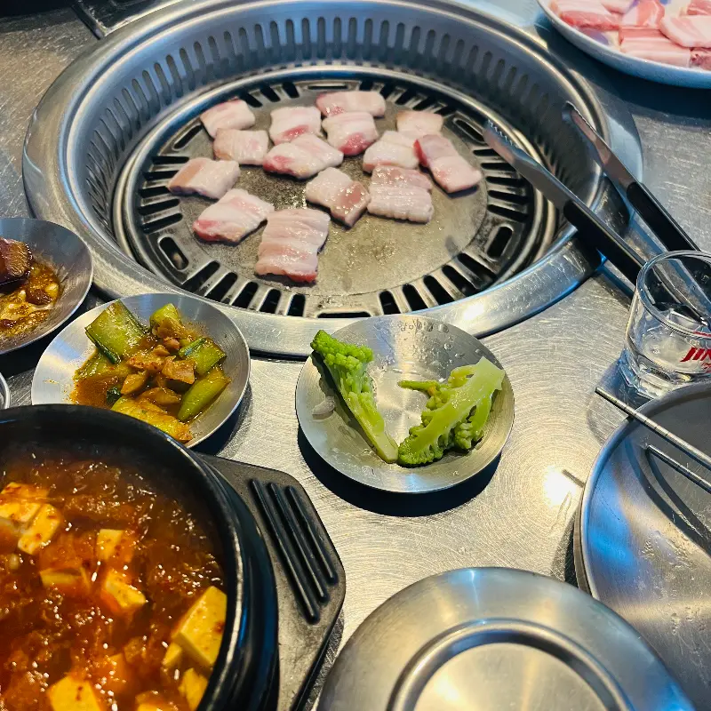 한국식 바비큐 컨셉은 언제나 옳다. 테이블에서 직접 구워 먹는 삼겹살은 보기만 해도 군침이 돌았다. 지글거리는 소리와 함께 퍼지는 향긋한 냄새는 오감을 자극하며 어릴 적 가족들과 함께 했던 삼겹살 파티의 추억을 떠올리게 했다. 잘 익은 삼겹살 한 점을 상추에 싸서 입안 가득 넣으니, 낯선 도시에서의 긴장이 눈 녹듯 사라지는 기분이었다.