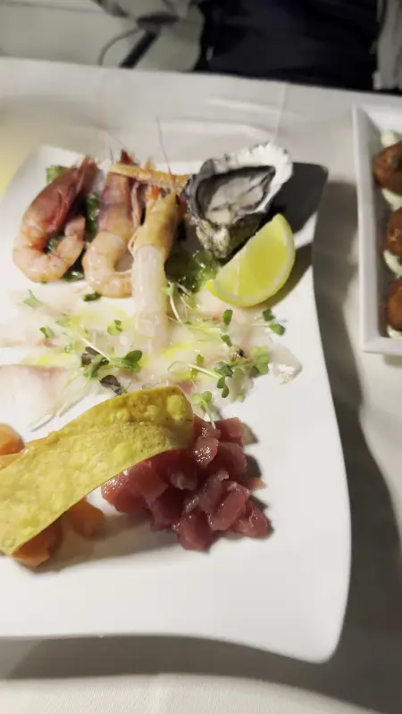 Fishbar De Milan은 해산물 요리를 전문으로 하는 곳으로, 다양한 종류의 생선과 해산물을 신선하게 맛볼 수 있다는 점이 매력적이다. 메뉴판에는 참치 타르타르, 생새우 토르텔리니, 세비체 등 다채로운 메뉴들이 준비되어 있었다.