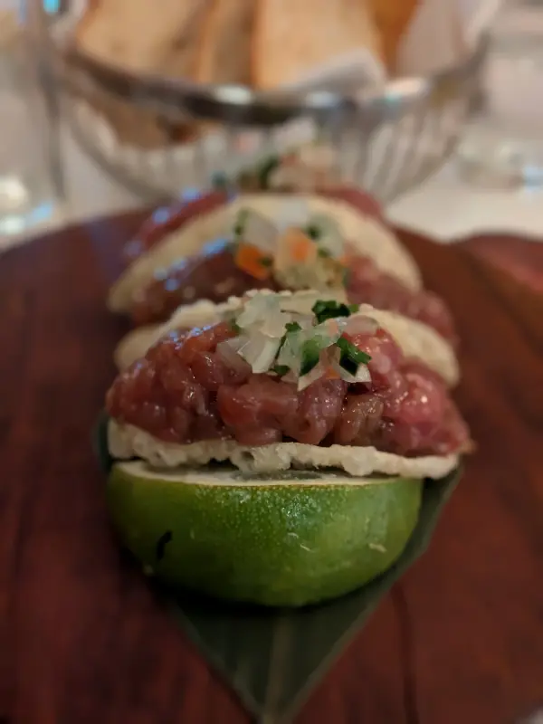 세비체 외에도 스테이크 타르타르 타코와 튀긴 칼라마리는 Pacifico에서 꼭 맛봐야 할 메뉴 중 하나이다. 스테이크 타르타르 타코는 신선한 스테이크와 아삭한 채소, 매콤한 소스가 조화롭게 어우러져 환상적인 맛을 선사한다. 특히, 라임 위에 올려져 나오는 타코는 상큼함을 더해준다.