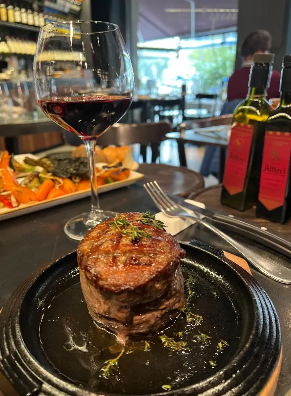 육즙 가득한 스테이크와 풍미 깊은 와인의 완벽한 조화!