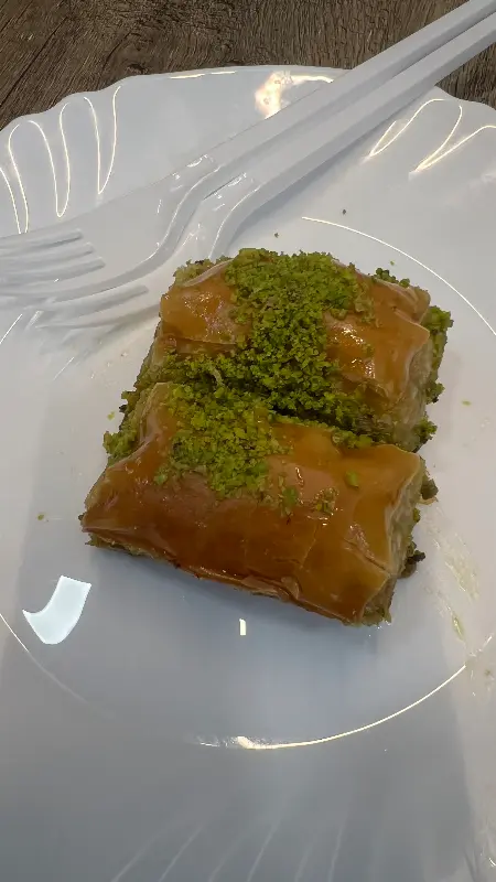 식사를 마치고 디저트로 바클라바를 주문했다. 바클라바는 얇은 페이스트리 층 사이에 견과류를 넣고 시럽에 절인 터키 전통 디저트이다. 겹겹이 쌓인 페이스트리의 바삭함과 달콤한 시럽, 고소한 견과류의 조화가 환상적이었다. 특히 피스타치오가 듬뿍 들어 있어 더욱 고소하고 풍미가 깊었다. 달콤한 바클라바는 식사를 완벽하게 마무리해주는 최고의 디저트였다.