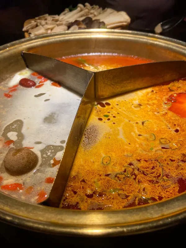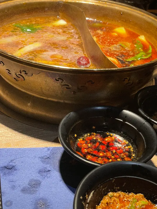문을 열자, 따뜻한 기운과 함께 코를 간지럽히는 향신료 향이 은은하게 퍼져 나갔다. 붉은 빛이 감도는 실내 조명은 아늑한 분위기를 더했고, 테이블마다 놓인 훠궈 냄비에서는 김이 모락모락 피어오르고 있었다. 마치 중국 현지에 와 있는 듯한 착각을 불러일으키는 풍경이었다.