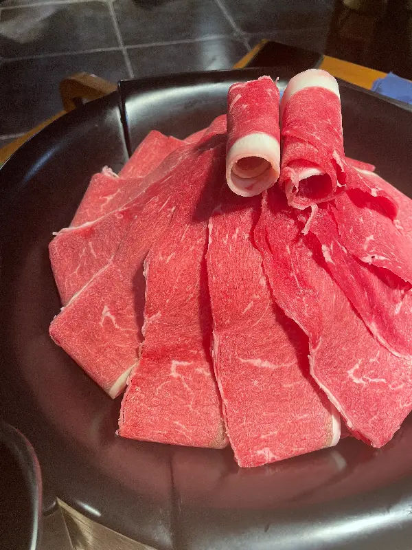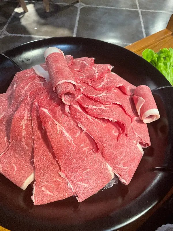육수를 선택한 후에는 신선한 야채와 고기를 주문했다. 윤기가 흐르는 얇게 썬 소고기와 푸짐하게 담겨 나온 야채는 보기만 해도 신선함이 느껴졌다. 특히 배추, 청경채, 버섯 등 다양한 종류의 야채는 훠궈의 풍성함을 더해주는 중요한 요소다.