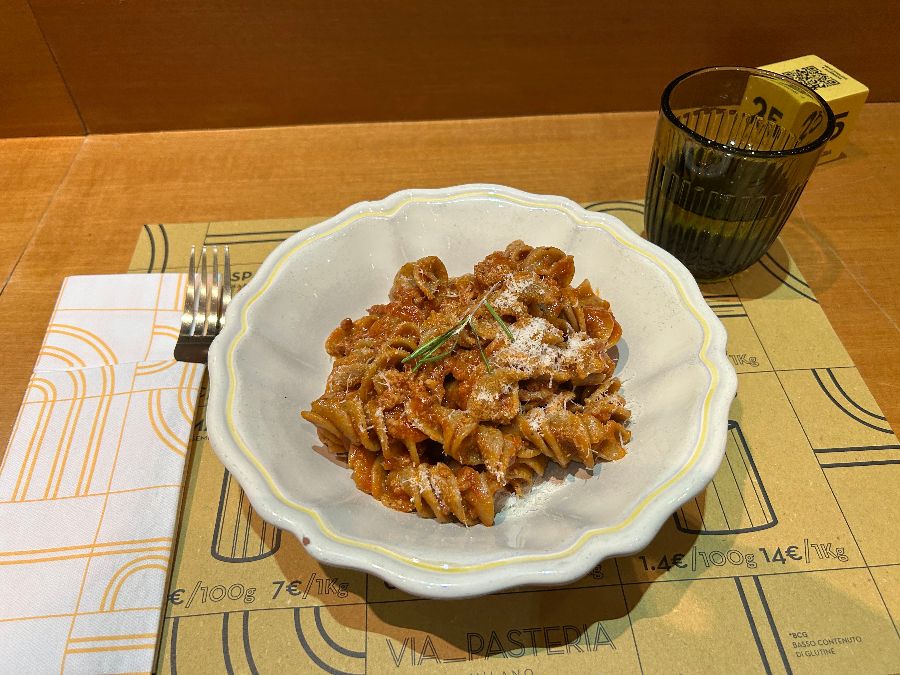 테이블 간 간격은 너무 좁지 않아 편안한 식사를 가능하게 하며, 벽면의 독특한 패턴이나 소품 하나하나에서도 VIA PASTERIA만의 개성이 묻어납니다. 마치 푸드코트 같은 캐주얼한 분위기 속에서도 고급스러운 맛과 섬세한 서비스가 어우러져, 방문객들은 편안함과 동시에 특별함을 느낄 수 있습니다. 창밖으로 보이는 밀라노의 풍경은 식사의 즐거움을 더해주며, 잠시 일상에서 벗어나 이탈리아의 여유를 만끽하게 합니다.