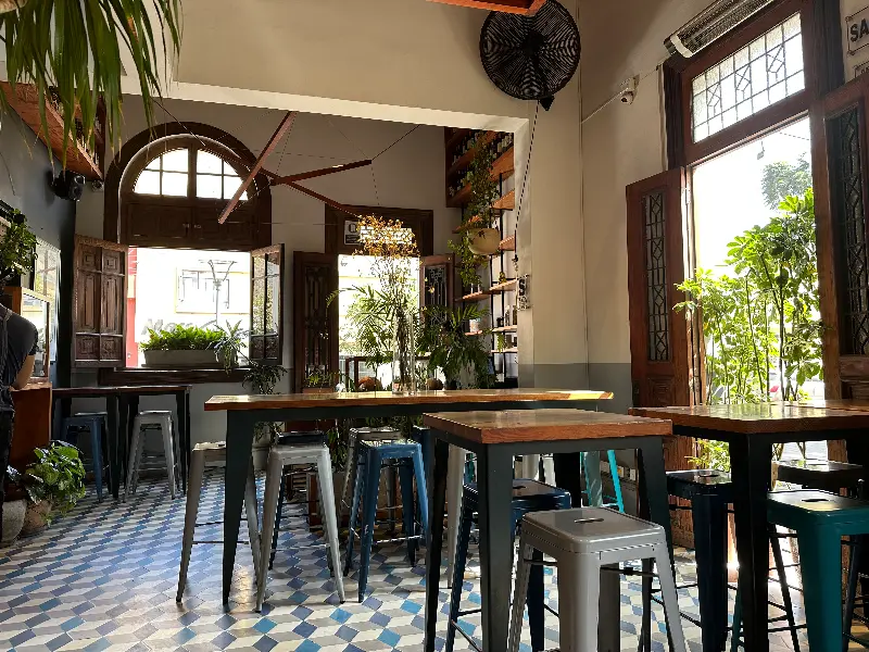 Pan Sal Aire는 전통적인 건물을 현대적으로 재해석한 힙한 분위기가 인상적입니다. 부드럽고 편안한 음악이 흐르는 가운데, 곳곳에 놓인 식물들이 싱그러움을 더합니다. 인터넷과 업무용 콘센트도 완비되어 있어, 혼자 와서 여유롭게 시간을 보내기에도 좋습니다. 실제로 노트북을 펼쳐 작업하는 사람들의 모습도 눈에 띄었습니다.