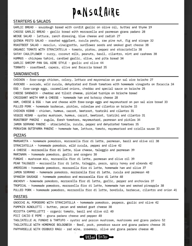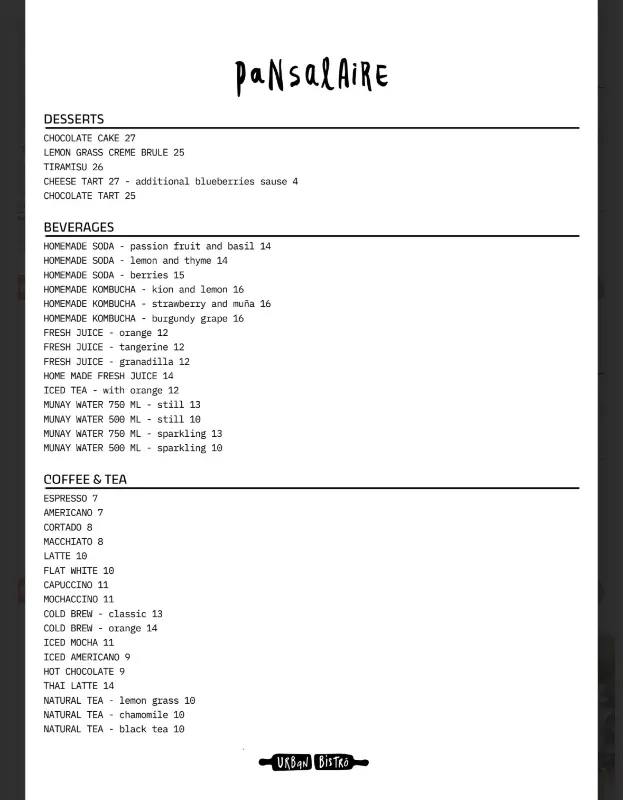 메뉴판을 살펴보니 샤크슈카, 버섯 팬 등 다양한 브런치 메뉴가 있었습니다. 다음에는 다른 메뉴도 꼭 맛봐야겠다는 생각이 들었습니다. 가격은 40솔에서 50솔 사이로, 적당한 수준입니다.