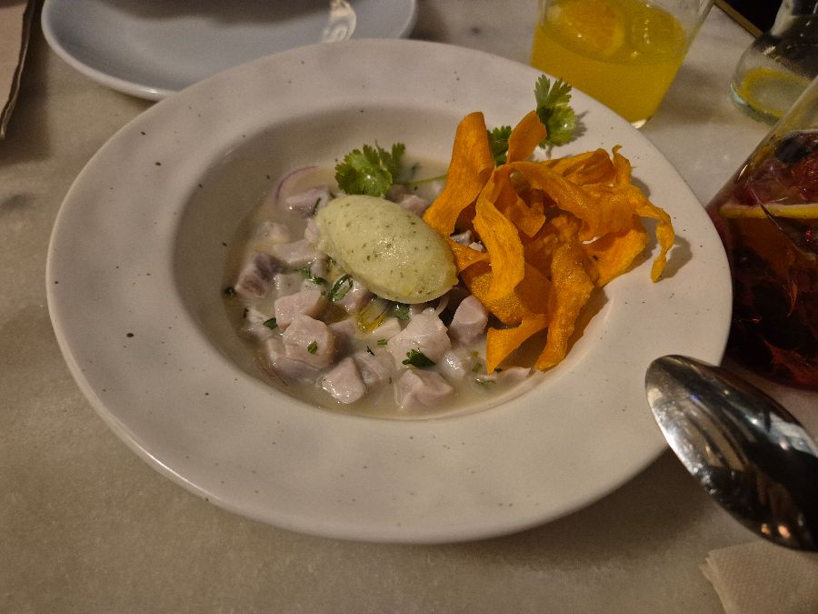 또 다른 해산물 요리인 세비체 역시 “훌륭했다”는 평가를 받습니다. 신선한 해산물을 상큼한 소스에 절여 만든 세비체는 청량감 가득한 맛으로 입맛을 돋우며, 곁들여진 바삭한 칩은 다채로운 식감을 더합니다.