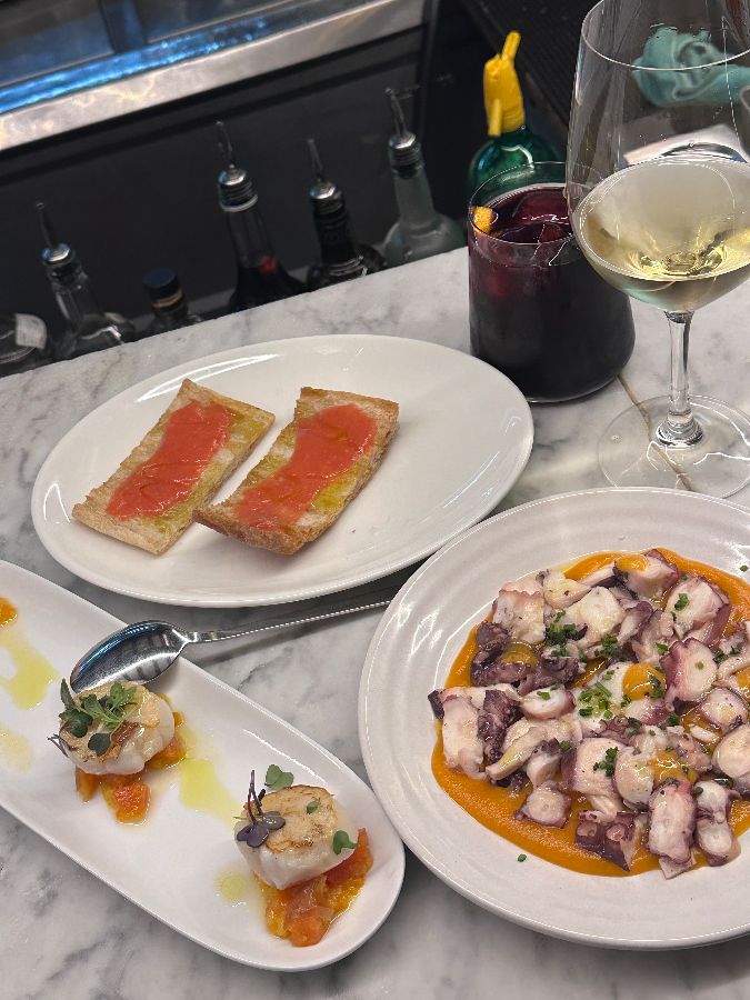 판 콘 토마테는 바삭하게 구운 빵에 신선한 토마토 소스를 곁들인 간단하면서도 스페인의 정취를 느낄 수 있는 메뉴입니다. 파타타스 브라바스는 매콤한 소스와 부드러운 아이올리 소스가 어우러진 감자튀김으로, 맥주나 샹그리아와 환상의 궁합을 자랑합니다.