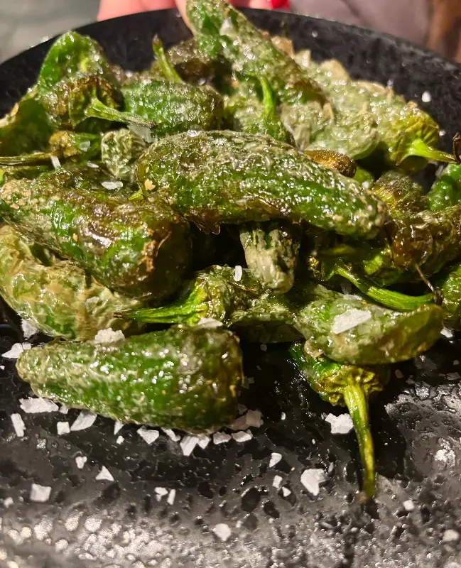 파드론 피멘토스(Pimientos de Padron) 또한 빼놓을 수 없는 메뉴입니다. 짭짤하면서도 고소한 맛이 맥주와 환상적인 조화를 이루었습니다.