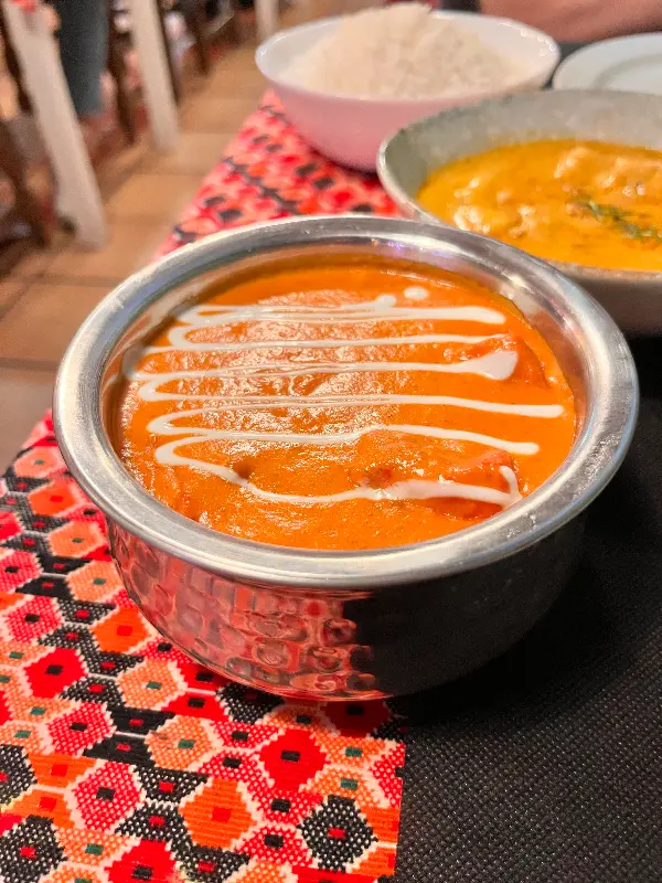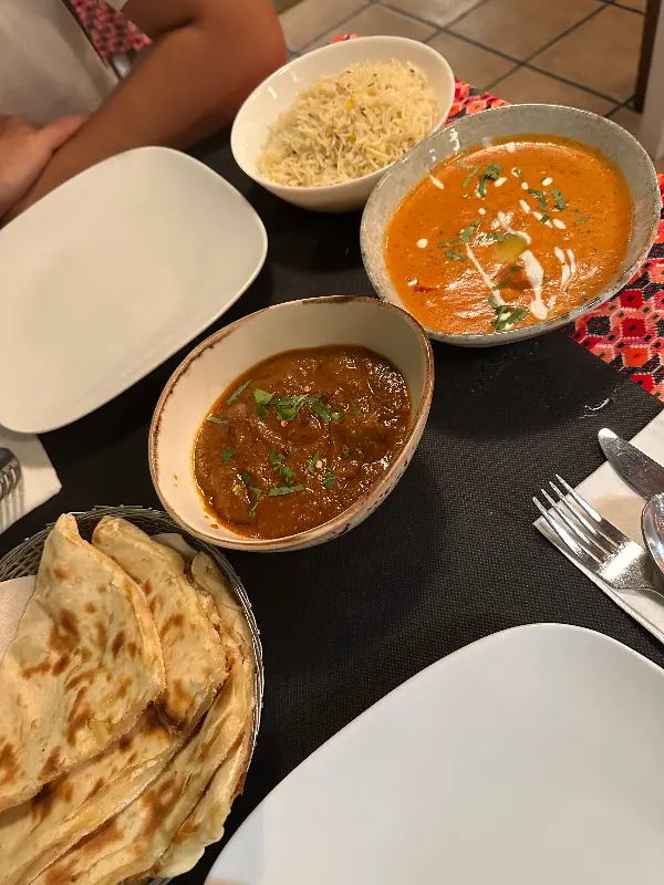 드디어 기다리고 기다리던 버터 치킨과 양고기 빈달루가 나왔다. 붉은빛이 감도는 버터 치킨은 부드러운 크림소스의 풍미가 일품이었고, 양고기 빈달루는 매콤하면서도 깊은 맛이 인상적이었다. 특히 양고기 빈달루는 1부터 10까지 매운 정도를 선택할 수 있다는 점이 좋았다. 매운 음식을 잘 못 먹는 나를 위해 직원은 세심하게 매운 정도를 조절해 주었고, 덕분에 부담 없이 맛있게 즐길 수 있었다.