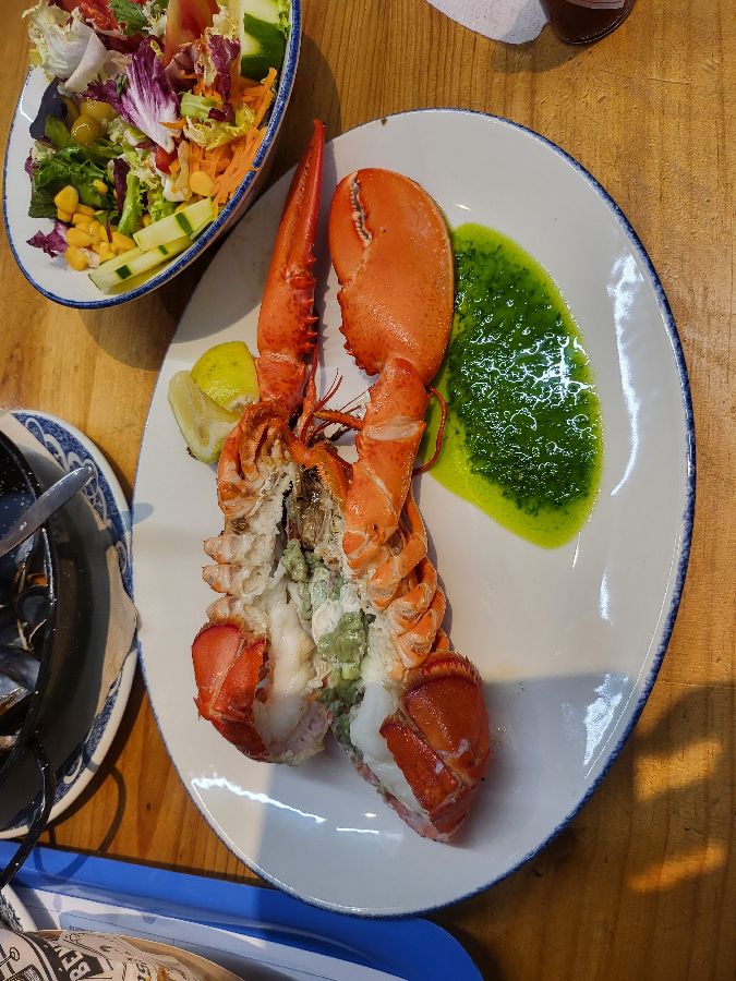 랍스터와 함께 구운 탱글탱글한 새우 역시 놓칠 수 없는 메뉴입니다. 껍질째 구워져 고소한 향이 더욱 진하게 배어 나온 새우는, 껍질을 벗기는 수고로움조차 즐거움으로 바꾸는 마성의 맛을 자랑합니다. 그릴에 구워진 새우는 씹을 때마다 톡톡 터지는 식감과 함께 농축된 바다의 맛을 선사하며, 맥주 안주로도 완벽한 궁합을 이룹니다. 아는 사람은 아귀 튀김도 강력 추천했다고 하니, 다음 방문에는 꼭 시도해보고 싶은 메뉴입니다.