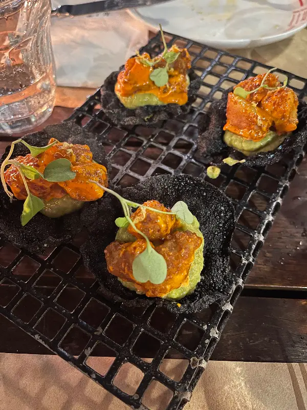 드디어 기다리고 기다리던 애피타이저가 나왔다. 판 콘 토마테는 신선한 토마토의 풍미가 그대로 느껴졌고, 하몽 크로켓은 겉은 바삭하고 속은 촉촉한 완벽한 조화를 이루었다. 특히 파타코네스 콘 크루도 데 투나는 신선한 참치의 풍미와 아삭한 식감이 환상적인 조화를 이루어, 입안에서 감탄사가 절로 나왔다.