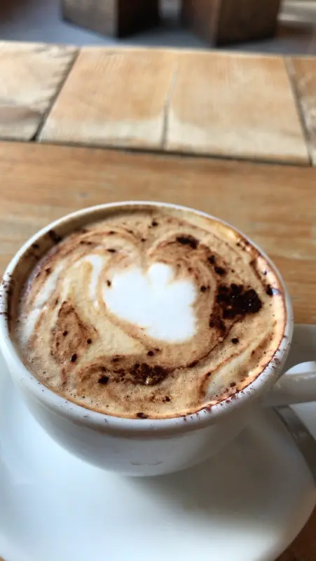 하트 모양 라떼 아트가 인상적인 커피. 향긋한 커피 향이 기분을 좋게 만든다.