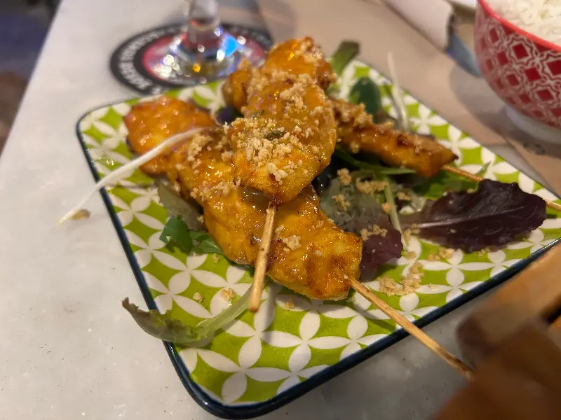 마지막으로 맛본 치킨 사테는 달콤하면서도 짭짤한 맛이 일품이었습니다. 숯불 향이 은은하게 느껴지는 닭고기는 부드럽고 촉촉했고, 함께 제공되는 땅콩 소스는 고소함을 더했습니다. 샐러드와 함께 곁들여 먹으니 느끼함 없이 더욱 맛있게 즐길 수 있었죠. 치킨 사테는 남녀노소 누구나 좋아할 만한 메뉴라고 생각합니다.