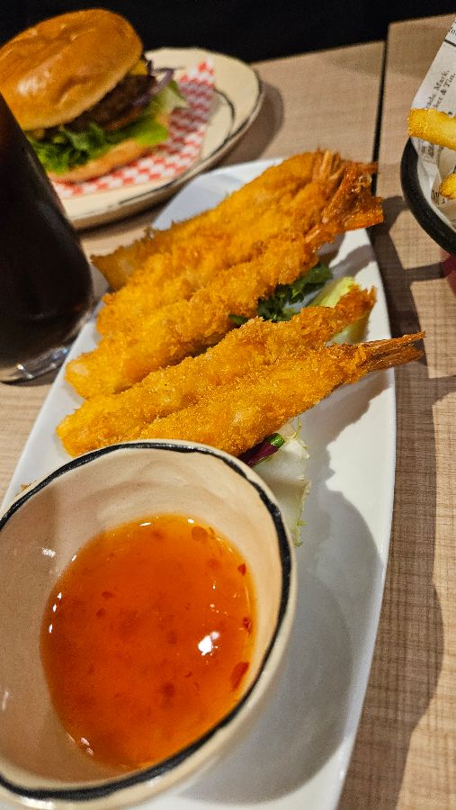 자리에 앉아 메뉴판을 훑어보니, 다양한 버거 종류와 함께 칵테일, 에피타이저까지 선택의 폭이 넓었습니다. 훌륭한 리뷰를 받은 생선 완자는 놓칠 수 없는 에피타이저였습니다. 바삭하게 튀겨진 겉모습과는 달리 한입 베어 물자마자 부드럽고 촉촉한 속살이 입안 가득 퍼지며, 은은한 생선 향이 식욕을 돋우었습니다. 메인 메뉴는 역시 버거였습니다. 이곳의 버거는 원래 이렇게 만들어져야 한다는 찬사를 받았던 만큼, 어떤 버거를 선택할지 행복한 고민에 빠졌습니다.
