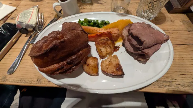 만약 일요일에 방문하신다면, 요크셔 푸딩이 곁들여진 로스트 디너를 추천합니다. 다만, 로스트 가격 대비 양이 적다는 의견도 있으니 참고하세요. 어떤 분은 파이를 주문했는데, 가격 대비 양이 너무 적어 실망했다는 후기도 있었습니다.
