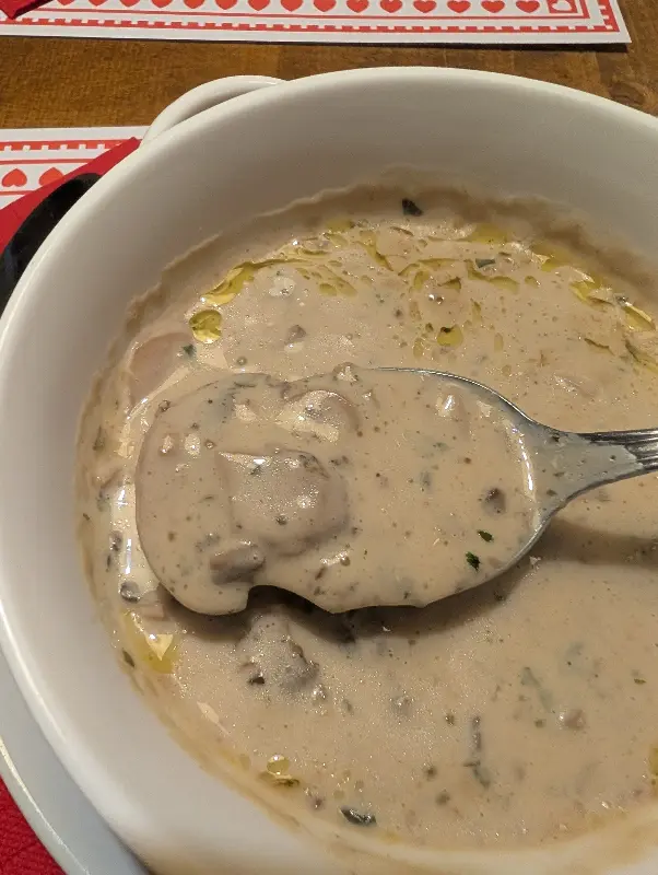 깊고 풍부한 풍미를 자랑하는 버섯 수프. 부드러운 질감과 버섯의 향이 입안 가득 퍼진다.
