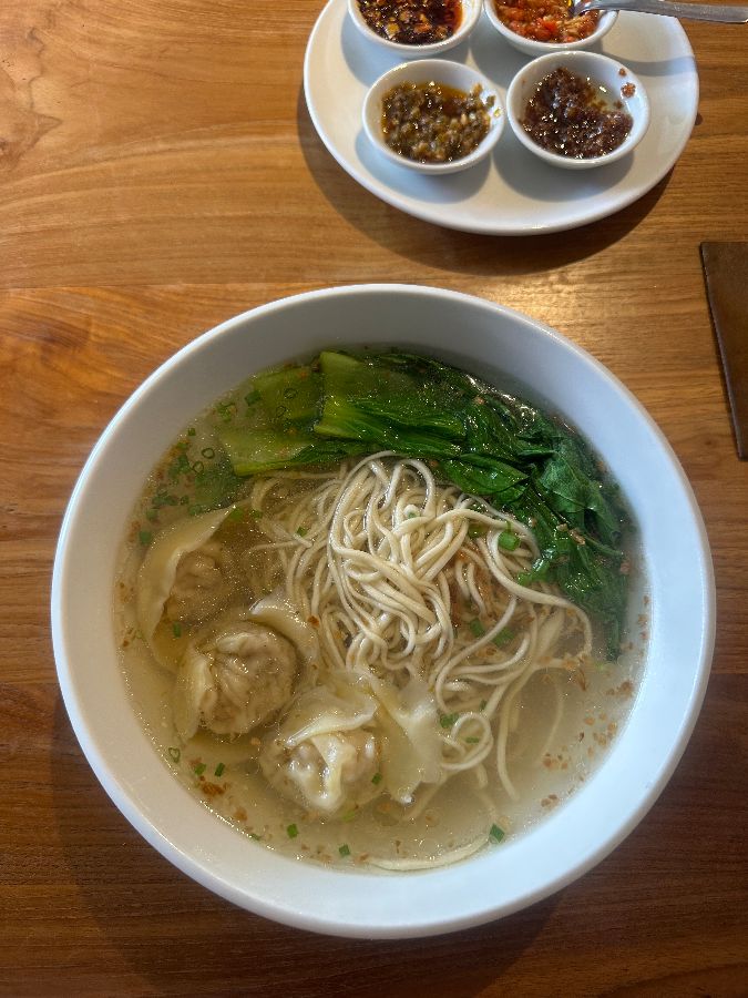 메인 요리로는 단연 완탕면을 주문했습니다. 갓 만든 수타면은 이곳의 자랑이었고, 실제로 한 입 맛보는 순간 그 이유를 알 수 있었습니다. 끓는 육수 위로 봉긋 솟아오른 얇고 하얀 면발은 한눈에 봐도 쫄깃함이 느껴졌습니다. 셰프가 중국 출신으로 좋은 재료를 엄선하고 전통 레시피를 고수한다는 말이 빈말이 아니었습니다. 국물은 깊고 진하면서도 깔끔한 맛이 일품이었고, 면발은 입안에서 춤을 추듯 탄력 있었습니다. 간혹 면의 질감이나 국물과의 조화에 대해 아쉬움을 표하는 분들도 있었지만, 제가 맛본 완탕면은 환상적 그 자체였습니다.
