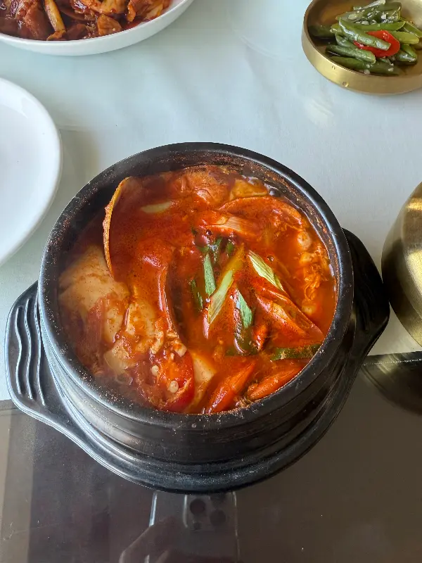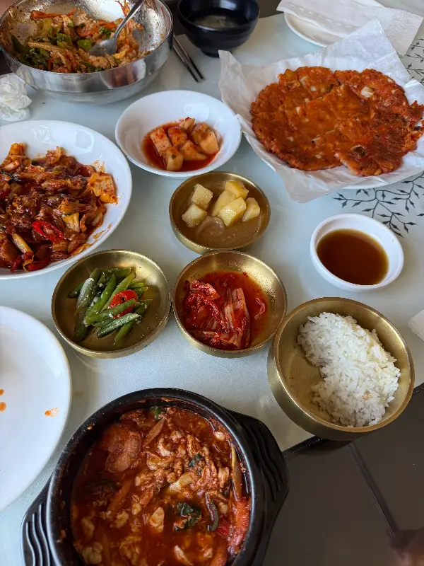 여행 중 먹었던 김치찌개는 그야말로 감동이었다. 얼큰하고 시원한 국물은 며칠 동안 느끼함에 지쳐있던 속을 단번에 개운하게 만들어주었다. 돼지고기와 두부, 김치가 듬뿍 들어간 김치찌개는 한국에서 먹던 맛 그대로였다. 아니, 어쩌면 한국에서 먹는 것보다 더 맛있게 느껴졌을지도 모르겠다.