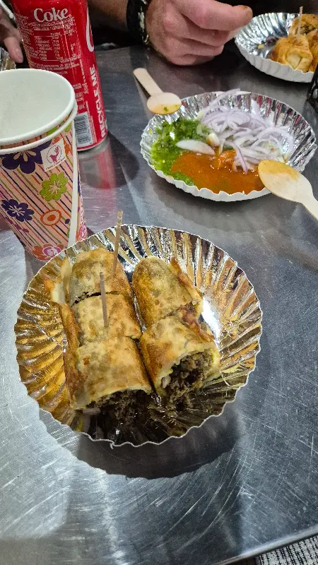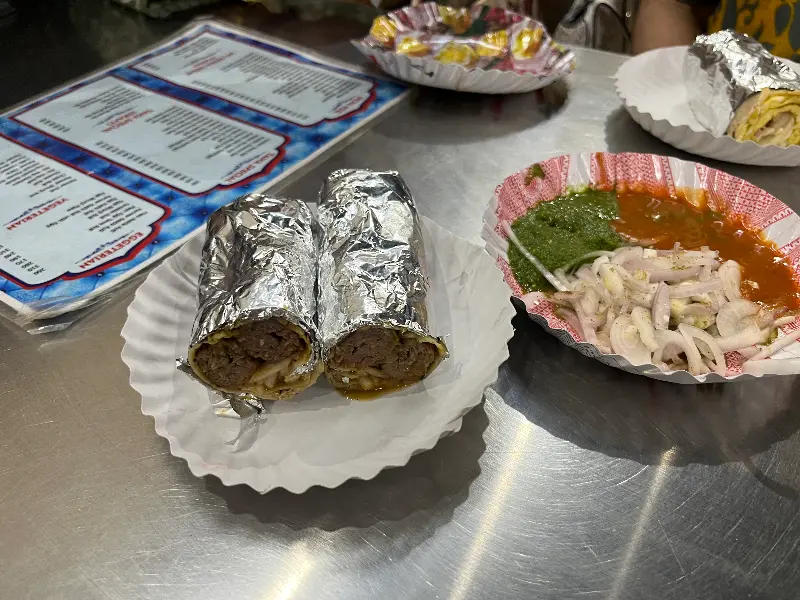 메뉴판을 살펴보니 다양한 닭고기와 양고기 케밥 요리가 눈에 띄었습니다. 채식주의자를 위한 메뉴도 준비되어 있다는 점이 인상적이었습니다. 뭄바이에서 맛본 최고의 롤이라는 칭찬이 자자한 시크 롤, 에그 롤, 치킨 티카 롤 중에서 고민하다가, 결국 가장 인기 있다는 치킨 말라이 카티 롤과 양고기 시크 케밥, 그리고 바이다 로티를 주문했습니다.