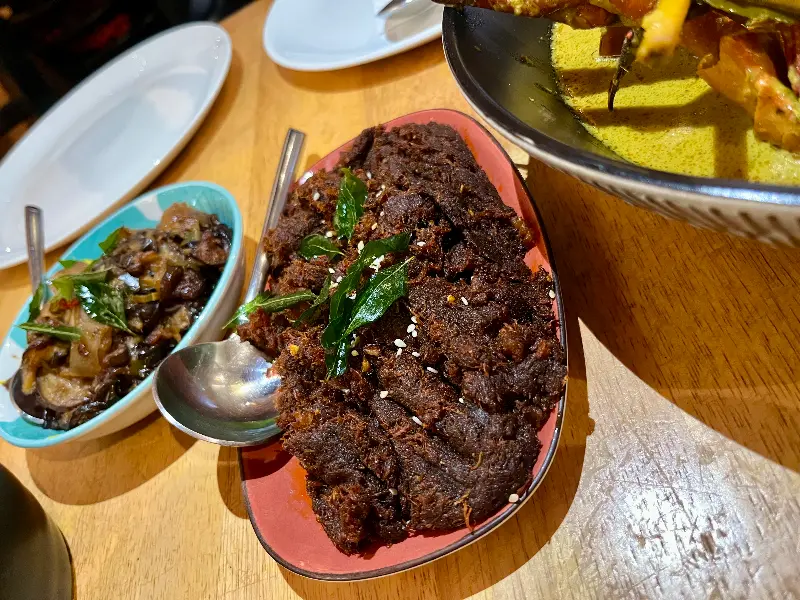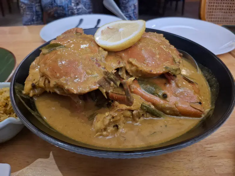 The Lankan Crab의 대표 메뉴는 단연 네곰보 게 카레다. 큼지막한 게 한 마리가 통째로 들어간 카레는 보기만 해도 군침이 돈다. 진한 카레 향이 후각을 자극하고, 윤기가 흐르는 게살은 신선함을 그대로 보여준다. 한 입 맛보니, 은은한 매콤함과 함께 깊은 풍미가 입안 가득 퍼진다. 코코넛 밀크의 부드러움과 향신료의 조화가 환상적이다.
