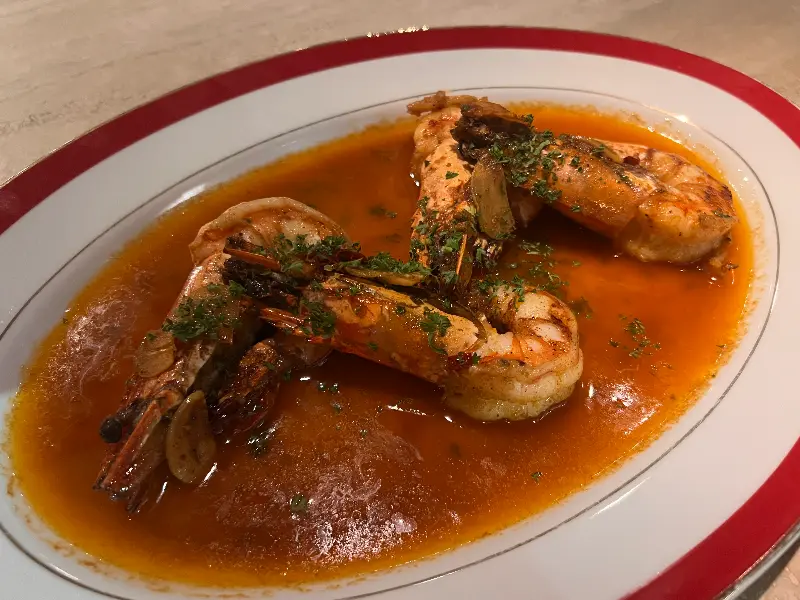 함께 간 친구는 새우 요리를 주문했는데, 한 입 맛보는 순간 감탄사가 절로 나왔습니다. 겉은 살짝 구워져 바삭하고, 속은 탱글탱글한 새우의 식감은 정말 최고였습니다. 새우 특유의 달콤함과 풍부한 향이 입안 가득 퍼져 나가는 순간, 행복감에 젖어 들었습니다. 붉은 빛깔을 뽐내는 새우 위에는 잘게 다진 파슬리가 뿌려져 있어 시각적인 즐거움까지 더했습니다.