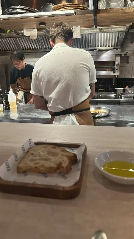 카운터에 앉으니, 셰프와 팀원들이 분주하게 음식을 준비하는 모습이 한눈에 들어왔습니다. 칼질 소리, 냄비가 부딪히는 소리, 그리고 셰프들의 활기찬 대화 소리가 어우러져, 레스토랑은 활기 넘치는 에너지로 가득했습니다. 그들의 열정적인 모습은 마치 하나의 공연을 보는 듯한 즐거움을 선사했습니다. 이런 활기찬 분위기 속에서라면 혼자 식사하는 것도 전혀 어색하지 않겠다는 생각이 들었습니다.