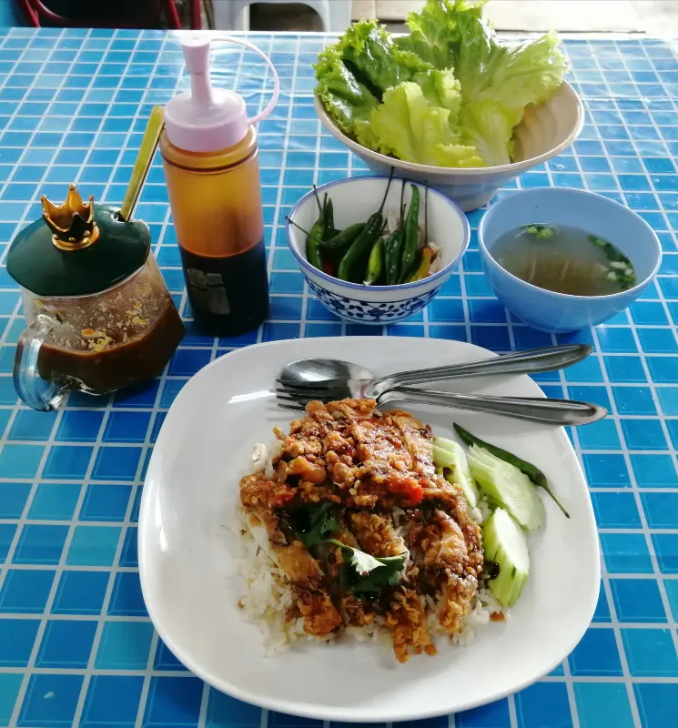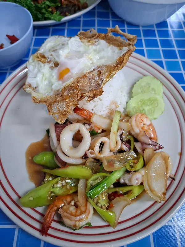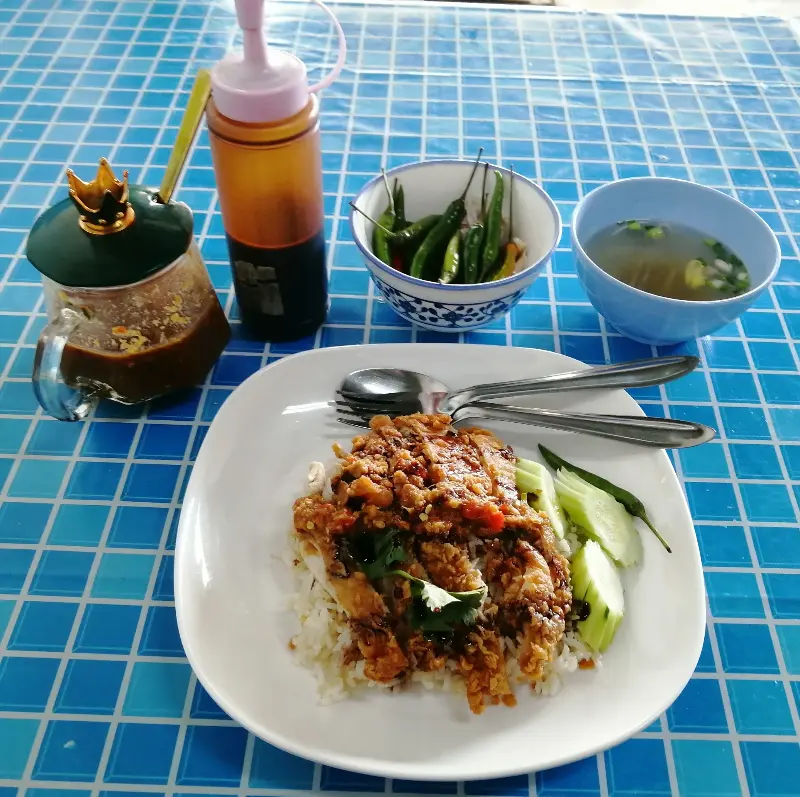 자리에 앉아 메뉴판을 펼쳐 들었습니다. 태국어 메뉴판과 영어 메뉴판이 나란히 놓여 있었는데, 특이하게도 가격이 달랐습니다. 영어 메뉴판의 가격이 더 비싼 것을 확인하고는 살짝 당황스러웠습니다. “태국어 메뉴판과 영어 메뉴판이 있는데, 이중 가격입니다. 영어 메뉴판이 훨씬 비쌉니다.”라는 리뷰가 떠올랐습니다. 겉으로는 친절하지만, 외국인에게는 가격을 더 받는다는 이야기에 약간의 경계심을 품었습니다. 하지만, 음식을 맛보는 순간, 그런 의심은 눈 녹듯이 사라졌습니다.