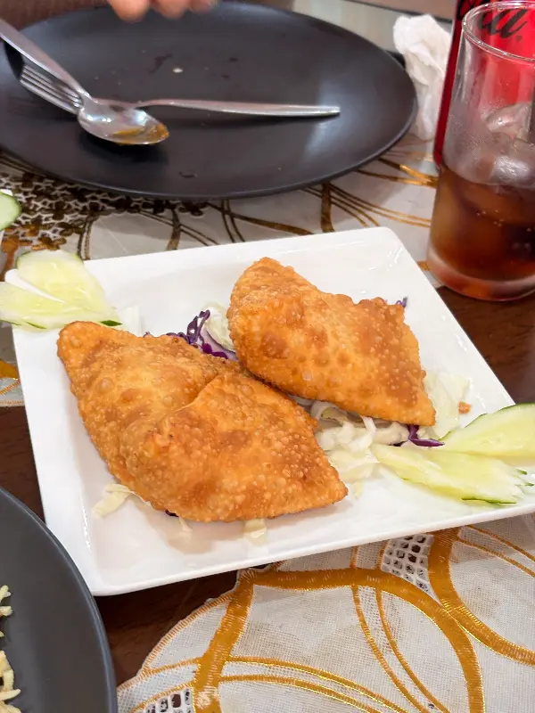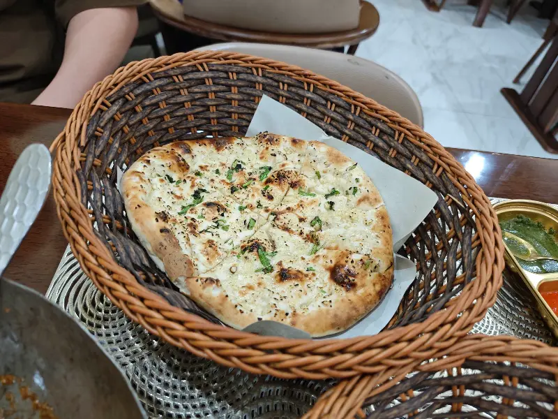 먼저 치킨 카라이를 맛보았다. 부드러운 닭고기는 입 안에서 살살 녹았고, 매콤하면서도 깊은 풍미의 소스는 혀끝을 강렬하게 자극했다. 땀이 송골송골 맺힐 정도로 매웠지만, 멈출 수 없는 중독성이 있었다. 갓 구운 플레인 난에 치킨 카라이 소스를 듬뿍 찍어 먹으니, 매운맛이 중화되면서 더욱 풍부한 맛을 느낄 수 있었다.